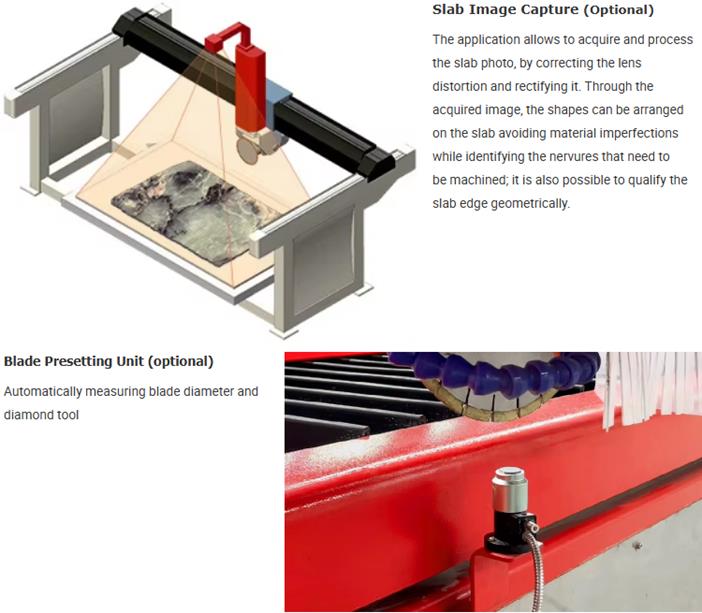Match these capabilities with Italian ESA CNC system, digital servo motors and Zues CAD CAM drawing software to make all kind of cuts with ease. HKNC-500 can also been equipped with a vacuum manipulator for the automatic moving of slabs to optimise workpiece usage during the cutting process.